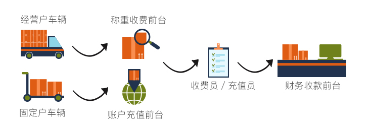 系統(tǒng)的三個(gè)前臺設(shè)計(jì):稱重收費(fèi)前臺,賬戶充值前臺和財(cái)務(wù)收款前臺;三個(gè)前臺的設(shè)計(jì),完美解決了市場交易費(fèi)的資金流向管理,做到了“人”“錢”“帳”一致,筆筆可查,可追溯。