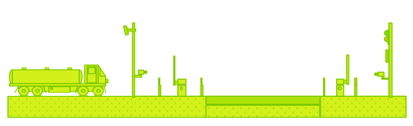 車輛上磅前:經(jīng)過有效識別區(qū)域,系統(tǒng)自動識別車輛身份,只有在校驗(yàn)通過后,入口道閘才會開啟,綠燈亮,語音播報提示車輛上磅;否則提示無效車輛,禁止上磅。